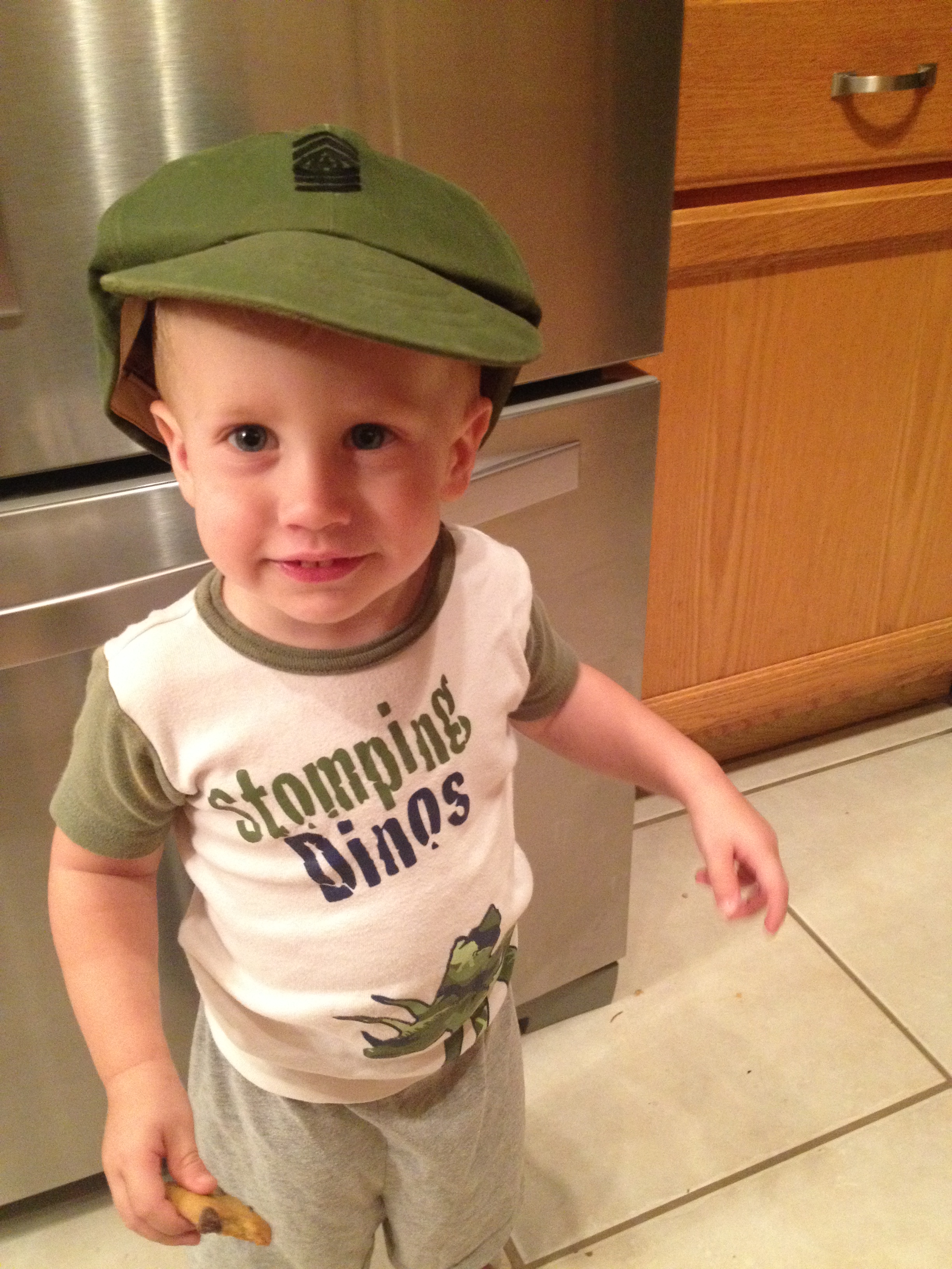 Jackson wearing Great Gramps cover (hat) from Vietnam.